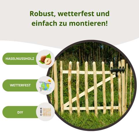 Unser Gartentor aus naturbelassenem Haselnussholz verleiht Ihrem Gartenzaun oder Ihrer Terrasse einen einzigartigen, rustikalen Charme und ist der ideale Eingang für Ihr Grundstück. Hergestellt in traditioneller Handarbeit aus europäischem Haselholz – robust, nachhaltig und wetterfest.